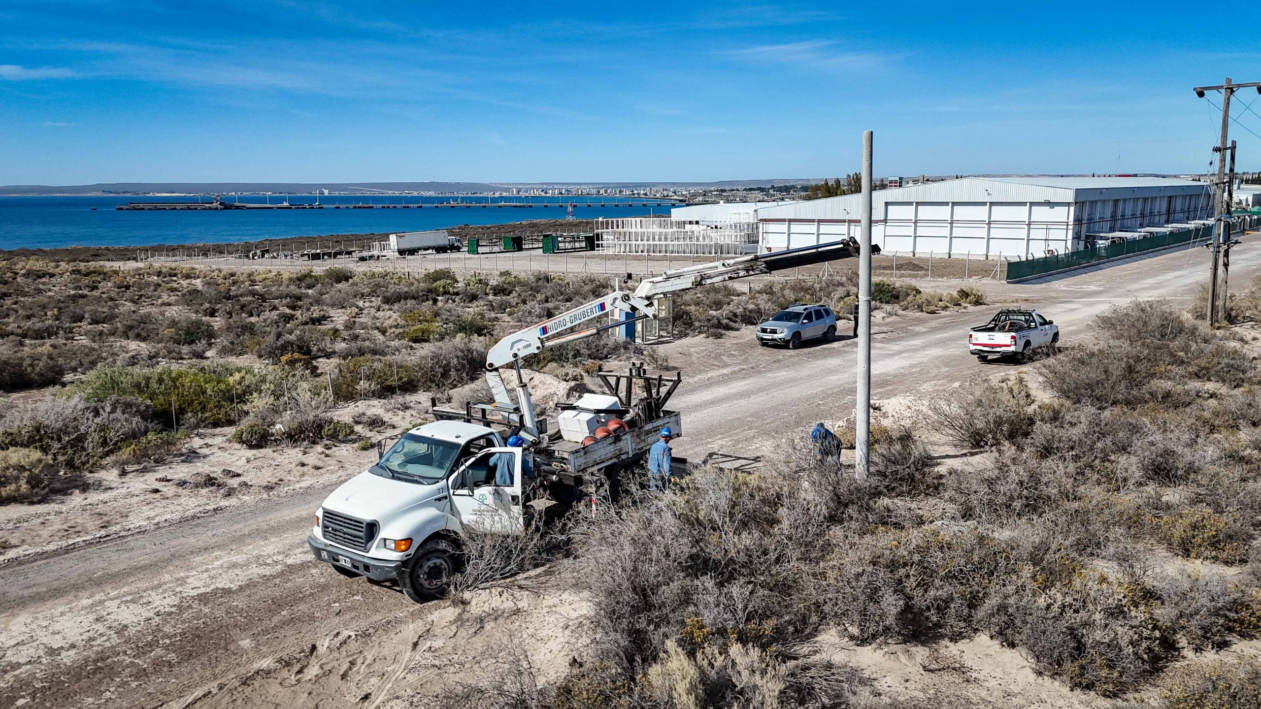 En la mañana de hoy, nuestro personal de Energía llevó adelante la instalación de dos nuevas columnas de hormigón, sobre la calle Ángel Timinieri en inmediaciones del Parque Industrial Pesquero. Luego de realizadas las obras de infraestructura y complementarias, se llevará adelante el montaje de nuevas redes aéreas de baja tensión, con el fin de ampliar la capacidad de entrega del suministro en la zona de influencia.
