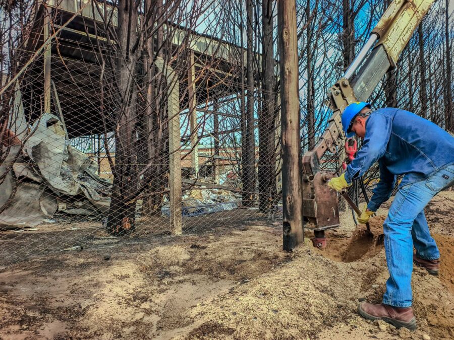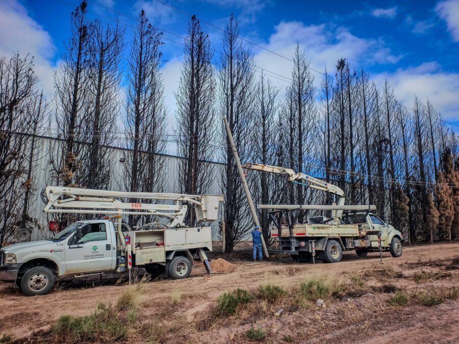 Para ello se debieron instalar dos nuevas columnas de hormigón, correspondientes al tendido eléctrico de baja tensión, en reemplazo de los postes afectados. Además, se realizo la reparación de líneas, aisladores y componentes eléctricos tanto de media, como de baja tensión afectados por las llamas.