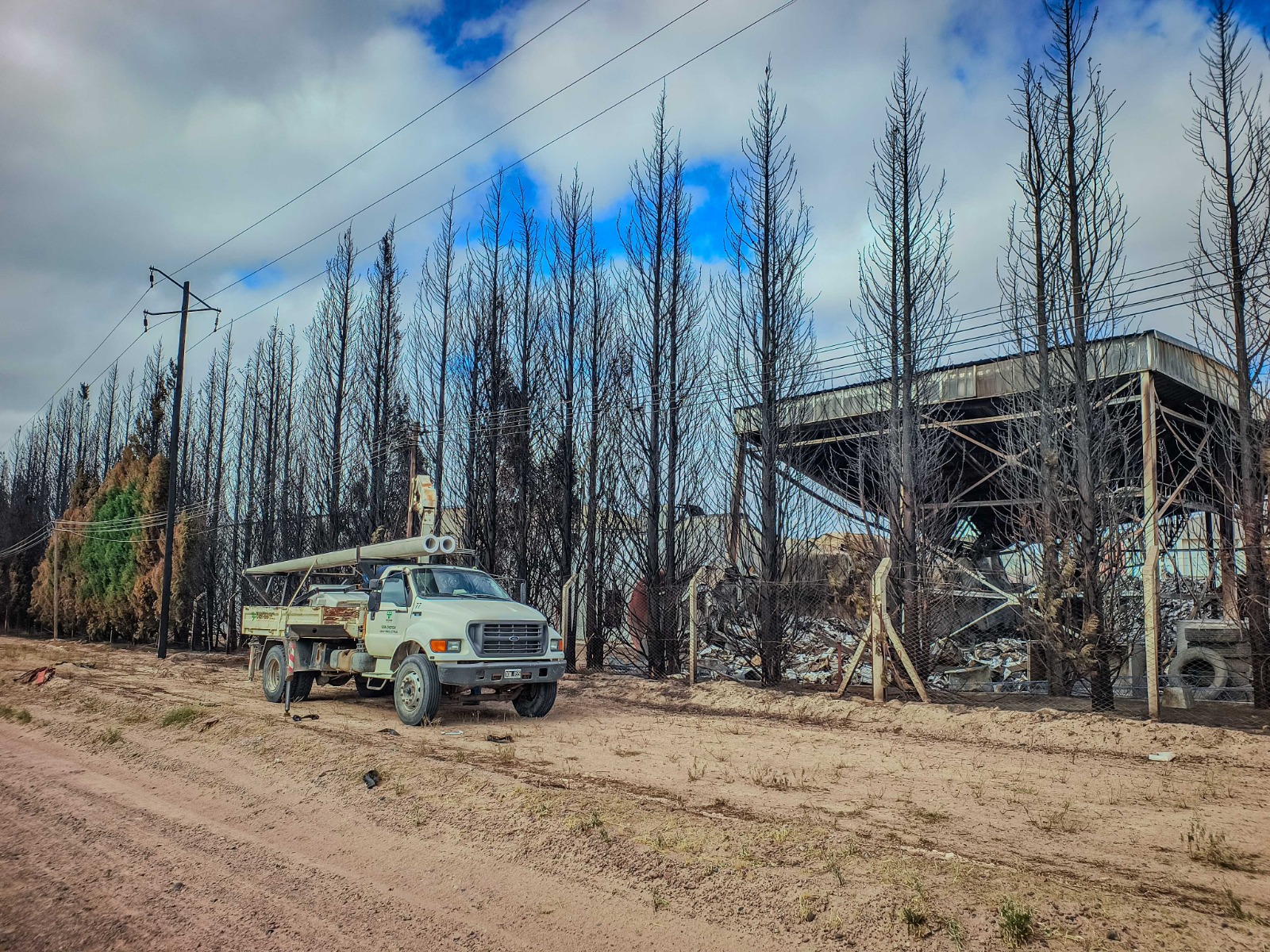 Para ello se debieron instalar dos nuevas columnas de hormigón, correspondientes al tendido eléctrico de baja tensión, en reemplazo de los postes afectados. Además, se realizo la reparación de líneas, aisladores y componentes eléctricos tanto de media, como de baja tensión afectados por las llamas.