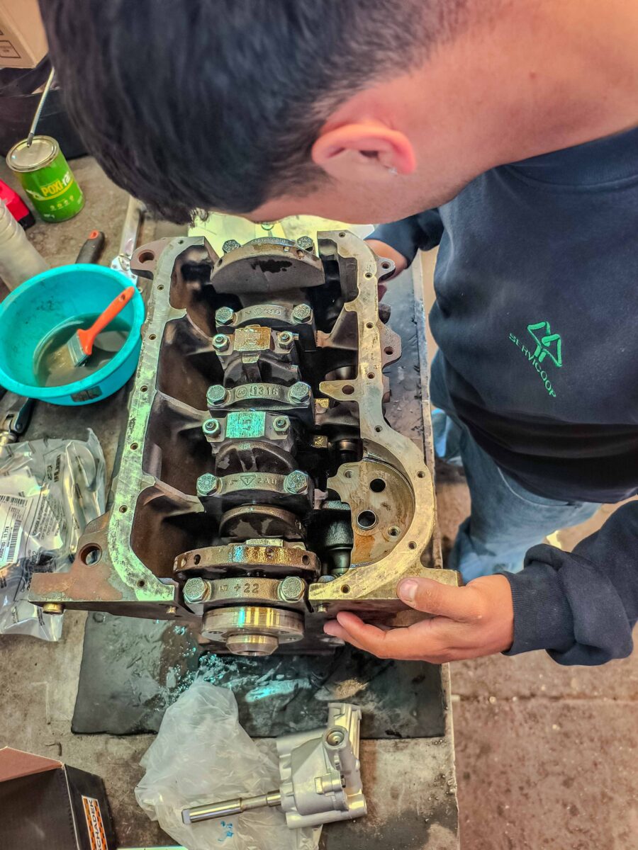La labor del taller mecánico combina planificación y respuesta inmediata. Diariamente se programan tareas en base a horas de uso, kilometraje y reportes del personal operativo, lo que permite extender la vida útil de la flota mediante controles preventivos. Pero además, ante una emergencia mecánica, el equipo está disponible las 24 horas para intervenir con rapidez y eficacia. El objetivo es claro: que cualquier inconveniente pueda resolverse en el menor tiempo posible, minimizando el impacto en la prestación de los servicios y asegurando que cada vehículo vuelva a la calle rápidamente. Recientemente, se llevó a cabo la renovación completa del motor de un utilitario afectado a la Gerencia de Agua y Saneamiento, una intervención mayor que permitió poner el móvil nuevamente en condiciones óptimas de operación.