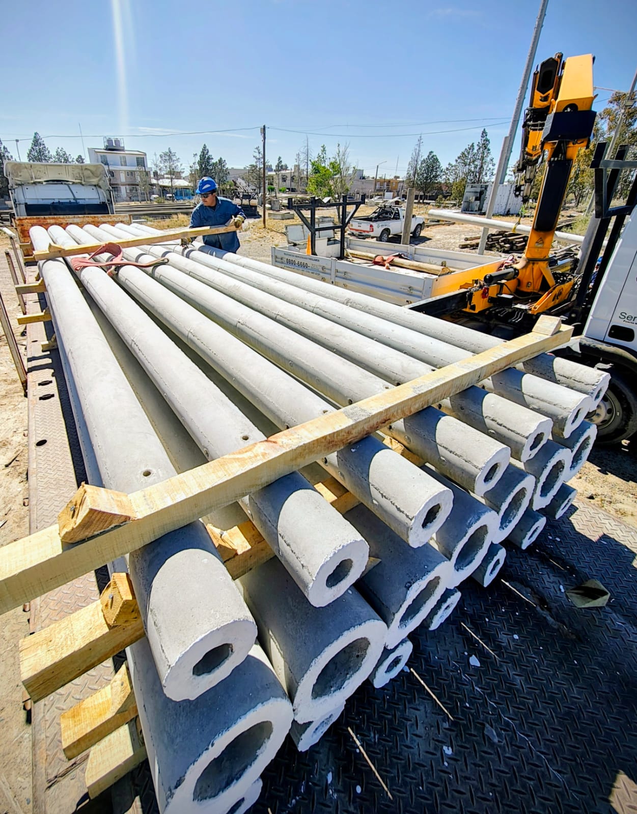 Durante la mañana de hoy recibimos un nuevo lote de columnas de hormigón que serán destinadas al recambio progresivo por postes de madera, pertenecientes al tendido eléctrico de baja tensión. Esta incorporación se enmarca en un plan sostenido de modernización de la infraestructura energética, que se ejecuta de manera sistemática en distintos sectores de la ciudad, de forma simultánea. En lo que va del año, ya se han instalado más de 270 columnas de hormigón en puntos estratégicos de la red eléctrica, reemplazando estructuras que habían cumplido su vida útil. Este proceso de renovación responde a un análisis técnico detallado realizado por nuestro personal, que define las zonas prioritarias de intervención en función del crecimiento urbano y las condiciones operativas del sistema.