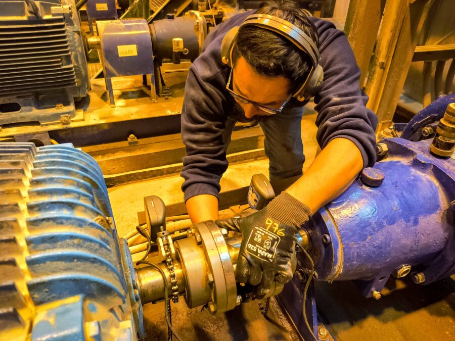 Un ejemplo de este compromiso se vivió recientemente con la bomba N°5. Luego de tareas de mantenimiento programado, los especialistas realizaron la alineación de los ejes entre el motor y el impulsor utilizando equipos de precisión. Este procedimiento, que demanda habilidad y cuidado extremo, asegura que la bomba funcione de manera óptima, sin vibraciones ni desgastes prematuros.