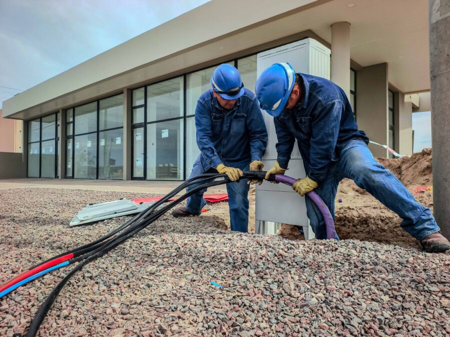 En la jornada de ayer se ejecutó el tendido de nuevas de redes subterráneas de baja tensión, en la intersección de Victoria de Eizaguirre y Morgan. Estas nuevas redes se vincularán a un nuevo buzón para ampliar la capacidad de entrega del suministro. Estas obras además de incrementar la capacidad de entrega de servicio, también dotan de mayor maniobrabilidad sobre el anillado en baja tensión.