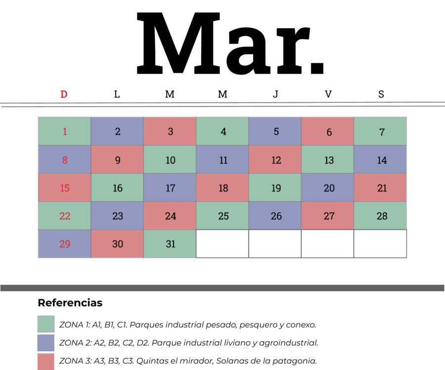 – Sector A 3: Entre las calles Vesta, Lavalle, San Martín, Jorge Hansen, Roca, Bo Procrear y aledaño, Victoria de Eizaguirre, Antonio Garate, Charles Darwin y Boulevard Brown.