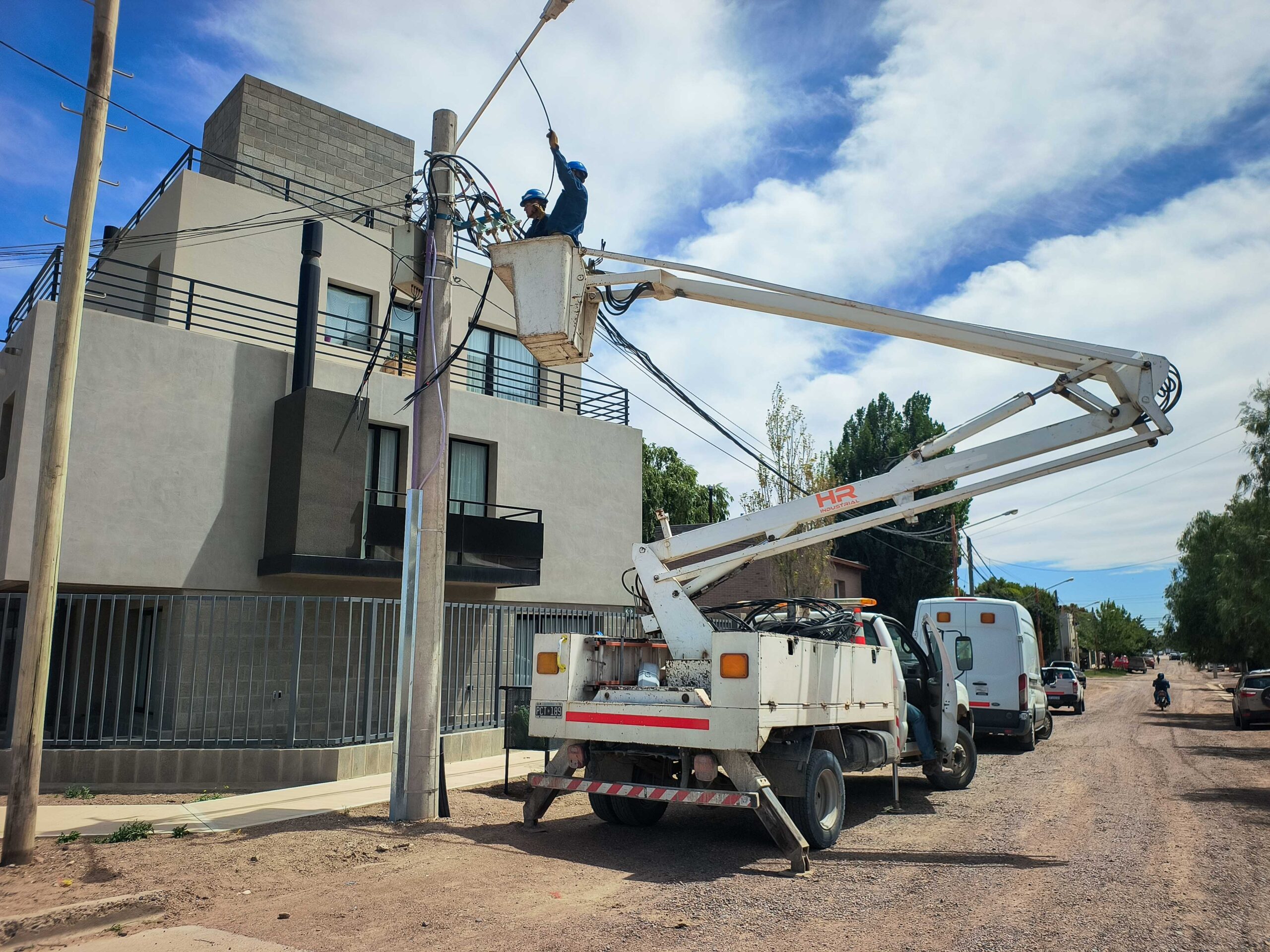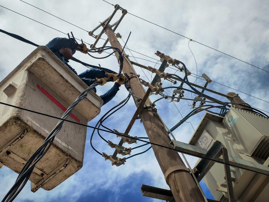 Nuestro personal de Energía, luego de ejecutadas las nuevas obras subterráneas de energía, realizó tareas de reconfiguración de redes aéreas de baja tensión, con el fin de equilibrar cargas entre las diferentes subestaciones de la zona de influencia, en la intersección de Mathews y Victoria de Eizaguirre.