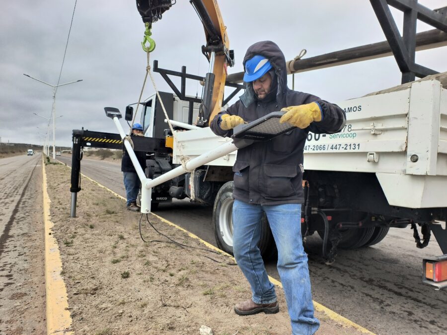 Renovación del servicio de alumbrado en Solana de la Patagonia y la ruta provincial N° 1.