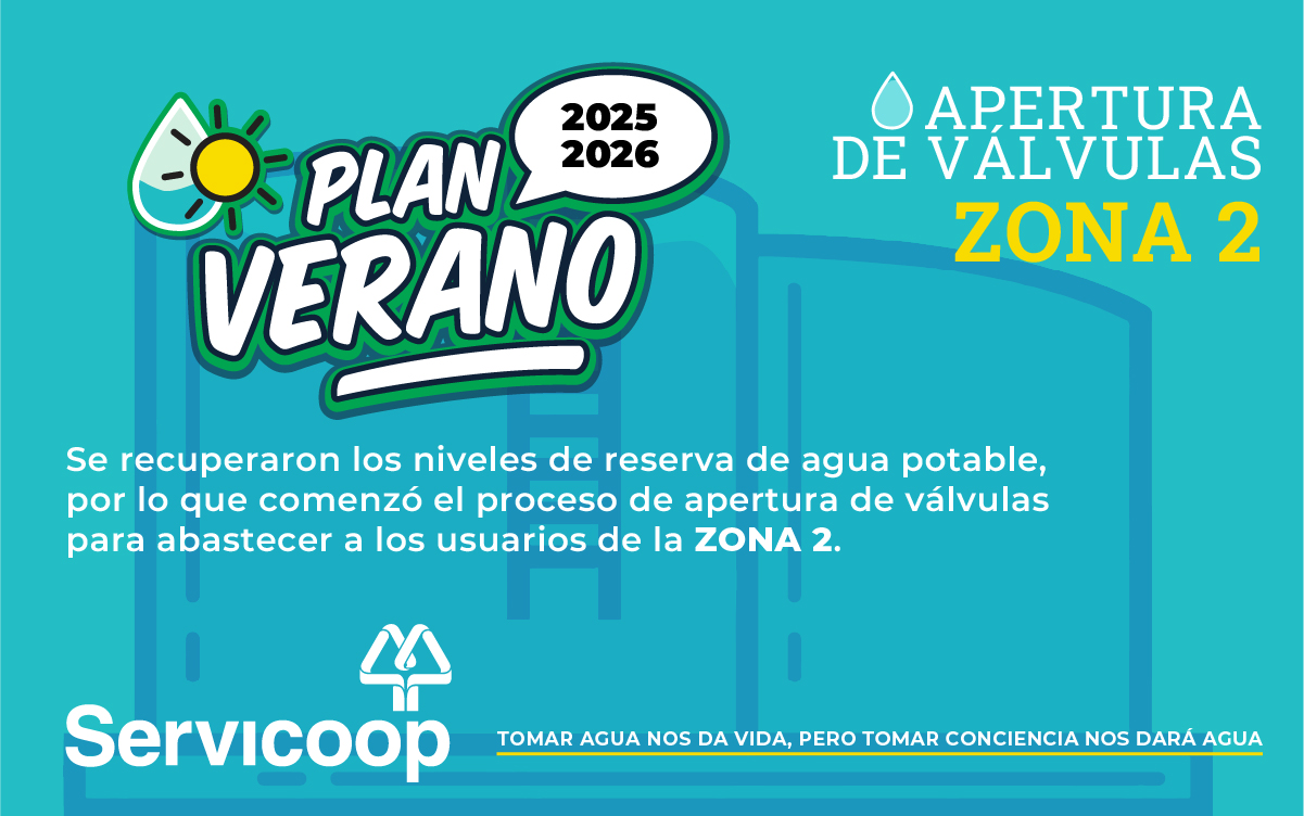Informamos a la comunidad que se recuperaron los niveles de reserva de agua potable, por lo que comenzó el proceso de apertura de válvulas para abastecer a los usuarios de la zona 2. Por el momento no será necesario continuar con el cronograma de cortes.