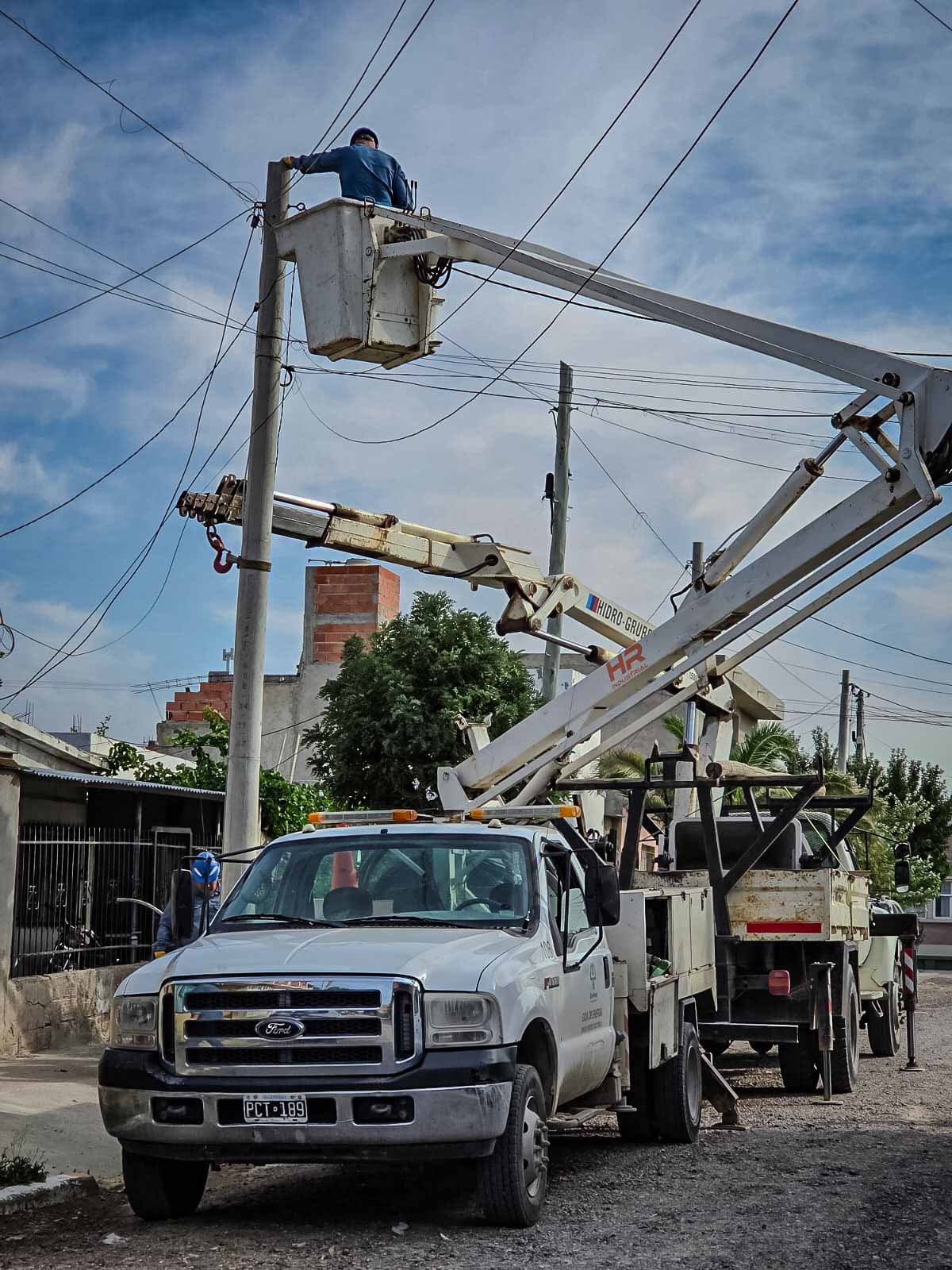 Durante la mañana de hoy, personal de redes de energía, realizó chequeos estructura y funcionalidad sobre columnas de hormigón en la zona norte de la ciudad. Estas tareas preventivas lo que buscan en detectar desperfectos sobre las instalaciones, para disminuir posibles fallas a futuro. Durante los procedimientos se analizan las estructuras de las columnas, su posición y también los herrajes que soportan las redes de energía.